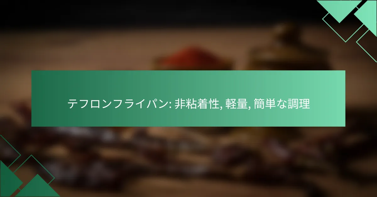 テフロンフライパンは、非粘着性の特性を持ち、軽量で扱いやすいため、簡単に調理ができます。適切な使用方法を理解することで、料理がよりスムーズに進み、フライパンの寿命も延びます。