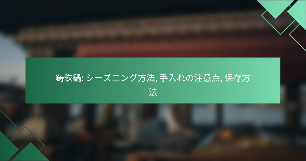鋳鉄鍋は、適切なシーズニングと手入れを行うことで、その性能を最大限に引き出し、長持ちさせることができます。シーズニングは鍋の表面に油の層を形成し、錆や食材のくっつきを防ぐために欠かせない工程です。また、保存方法にも注意を払い、清潔で湿気の少ない環境を整えることが重要です。