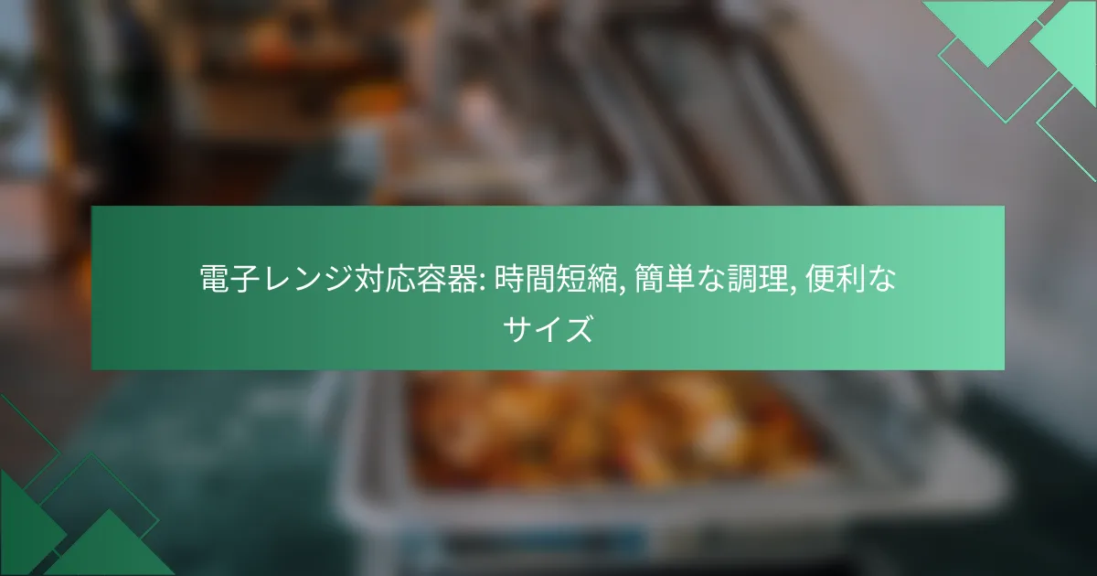電子レンジ対応容器を選ぶ際は、耐熱性やサイズ、使用目的を考慮することが重要です。これにより、調理時間を短縮し、便利に料理を楽しむことができます。